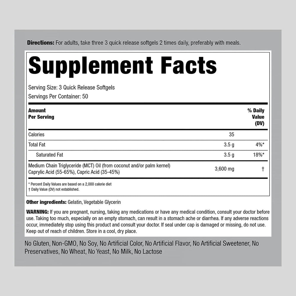 Piping Rock MCT Oil Capsules 3600Mg. 150 Capsulas Blandas