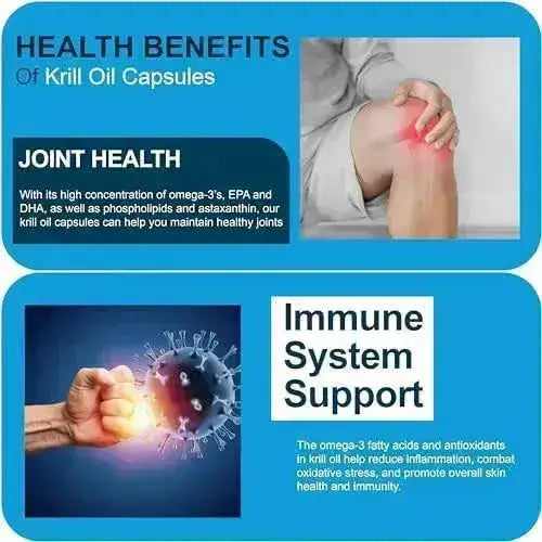 INGREDIENTES DE PRIMERA CALIDAD: Nuestro suplemento de aceite de krill tiene una combinación óptima de Omega 3, 6 y 9, astaxantina y fosfolípidos. La astaxantina garantiza que el aceite de krill sea fresco y los fosfolípidos permiten que el aceite se incorpore de manera eficiente con otros fluidos estomacales. Estas cápsulas de gel proporcionan una mejor fuente de grasas esenciales en comparación con el aceite de pescado omega 3 normal.