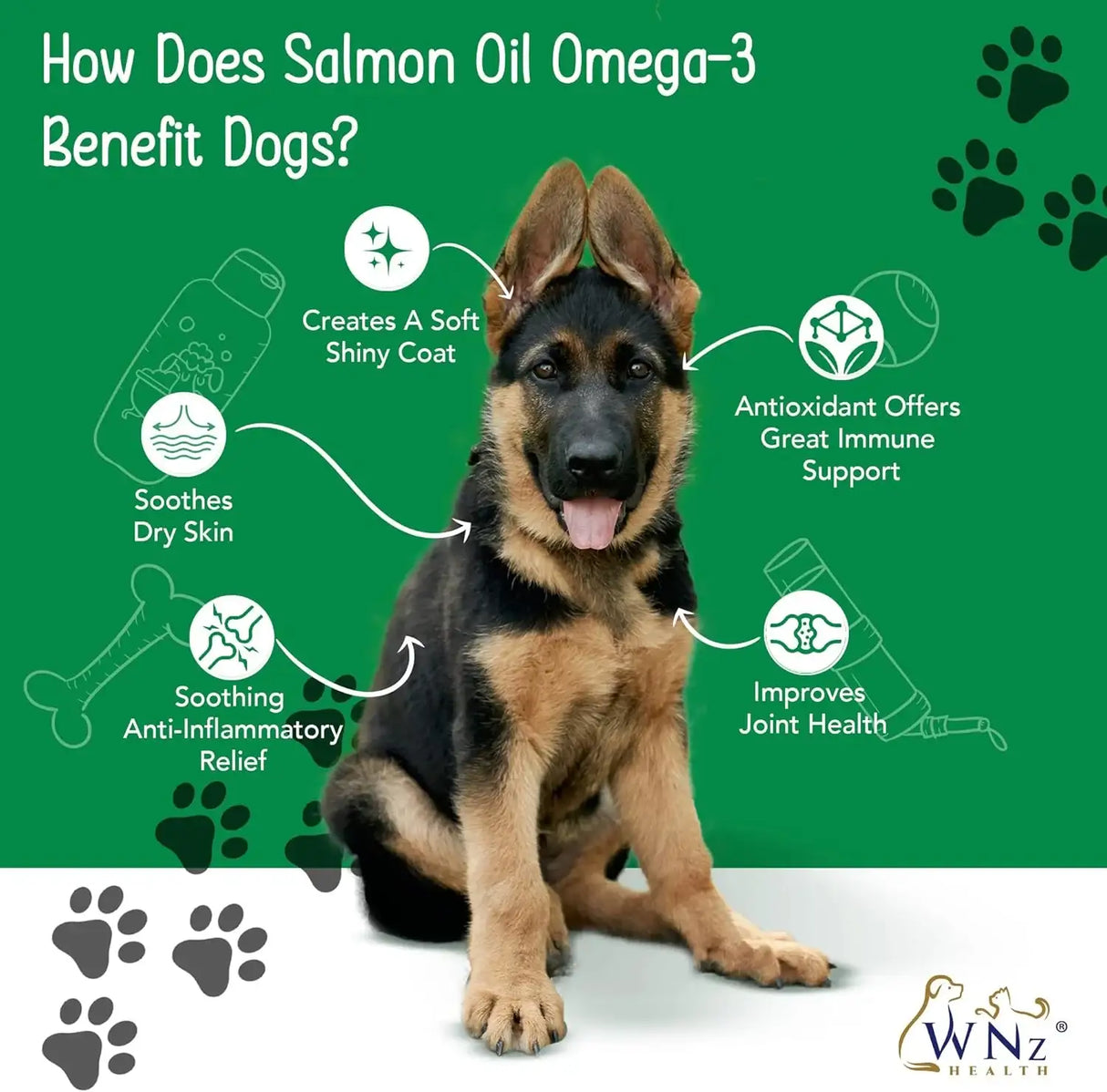 Masticables de Aceite de Salmón con Omega 3 para Perros: Ayuda a tu perro a combatir el dolor articular y la baja inmunidad. Prueba nuestras golosinas naturales con aceite de salmón para perros y revitaliza a tu mejor amigo. Nuestros masticables de aceite de pescado para perros promueven una piel sana y un pelaje brillante, refuerzan el sistema inmunitario y alivian el dolor articular.