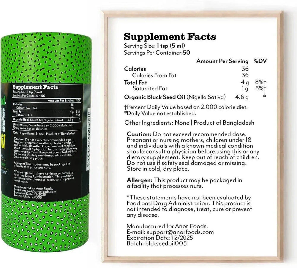 FUERTE Y POTENTE. Para ofrecer la mejor calidad posible a nuestros clientes, nuestro aceite de semilla negra se cultiva orgánicamente y se prensa en frío para preservar la calidad de las vitaminas y los ácidos grasos. Utilizamos sólo los cultivos vírgenes cosechados más recientemente para asegurar una alta potencia y una nutrición de alta calidad en nuestro aceite.