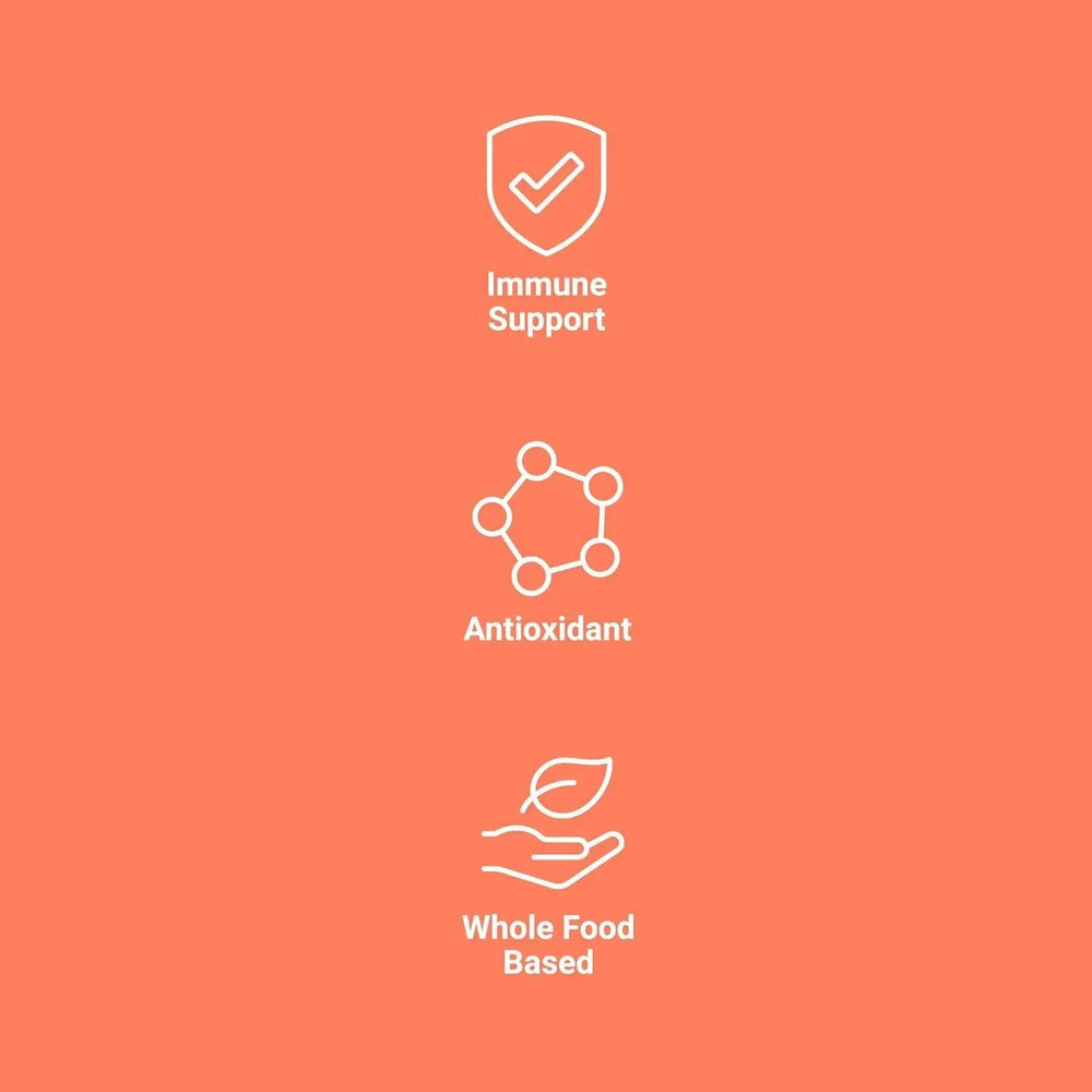 • También utiliza cerezas de acerola orgánicas e integrales de Brasil que se seleccionan cuidadosamente en diferentes etapas de madurez para garantizar el mayor contenido natural de vitamina C para una fórmula potente.