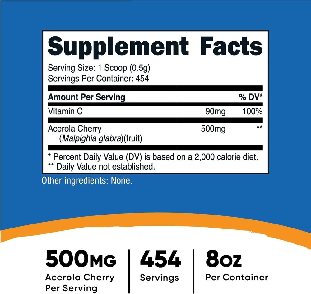 Nutricost Natural Vitamin C Acerola Cherry Powder 227Gr.