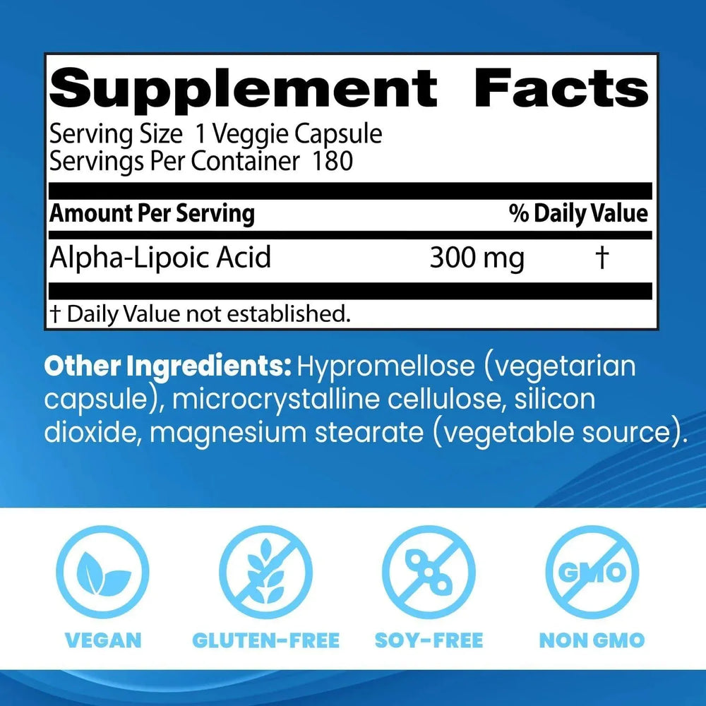 RADICALES LIBRES PARA EL BIENESTAR GENERAL: el antioxidante que combate los radicales libres ALA produce energía a través de la suplementación con ALA. Apoya el envejecimiento saludable, la función cognitiva, la salud del cerebro y la salud ocular.