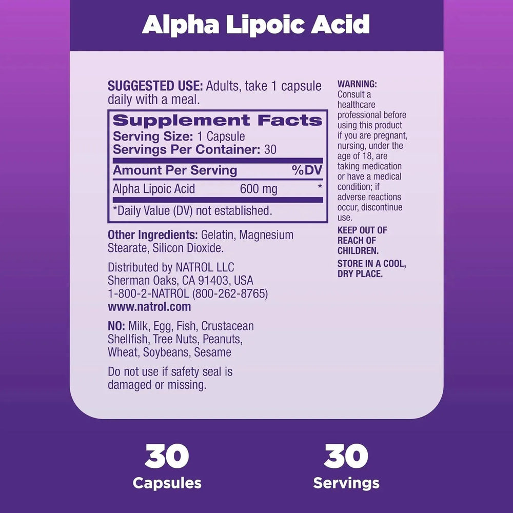 Natrol Alpha Lipoic Acid 600Mg. 30 Capsulas