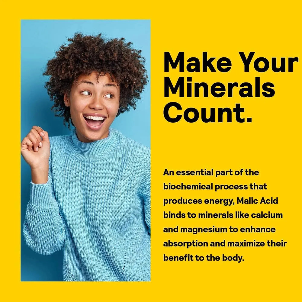 Agente quelante: las cápsulas de ácido málico de Nature's Life suministran 800 mg de este ácido frutal de calidad alimentaria que se une naturalmente a ciertos minerales como el calcio y el magnesio para mejorar la absorción y utilización por parte del cuerpo.