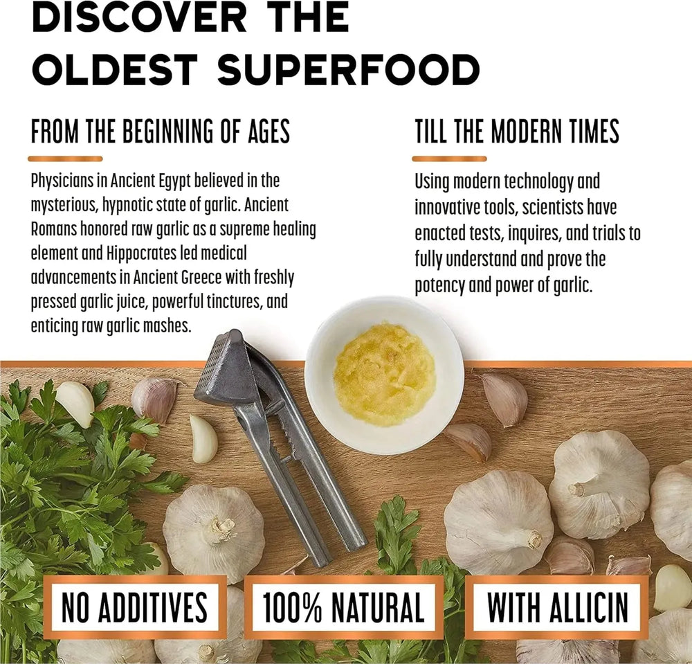 Superalimento antiguo procesado en frío: esta receta está elaborada a mano en su forma original procesada en frío para una absorción máxima y ultrarrápida. Aporta 576 mg de Allium Sativum por 30 gotas y no te provocará sensación de ardor ni malestar estomacal. Nuestra receta es superior a la mayoría debido a la conservación de la alicina, que es la parte principal y principal de cualquier extracción de ajo. Vea también nuestra fórmula nueva y mejorada SIN alcohol 11 veces más potente que proporciona 3,6 g de alicina en todo el frasco.