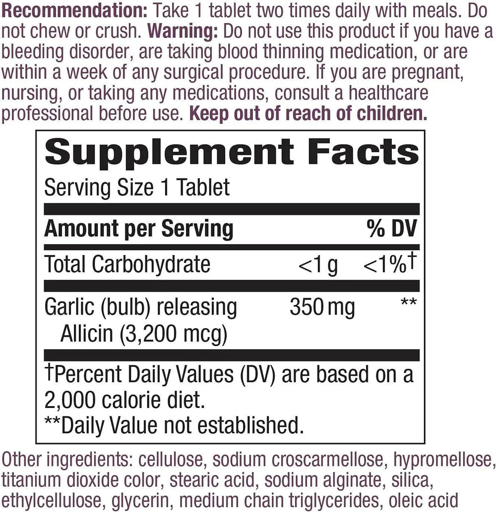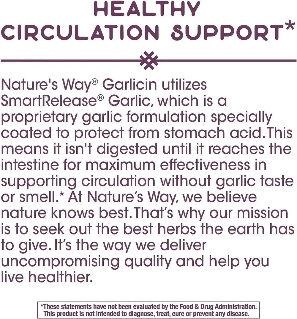 Nature's Way Premium Herbal Garlicin Cardio 350Mg. 180 Tabletas