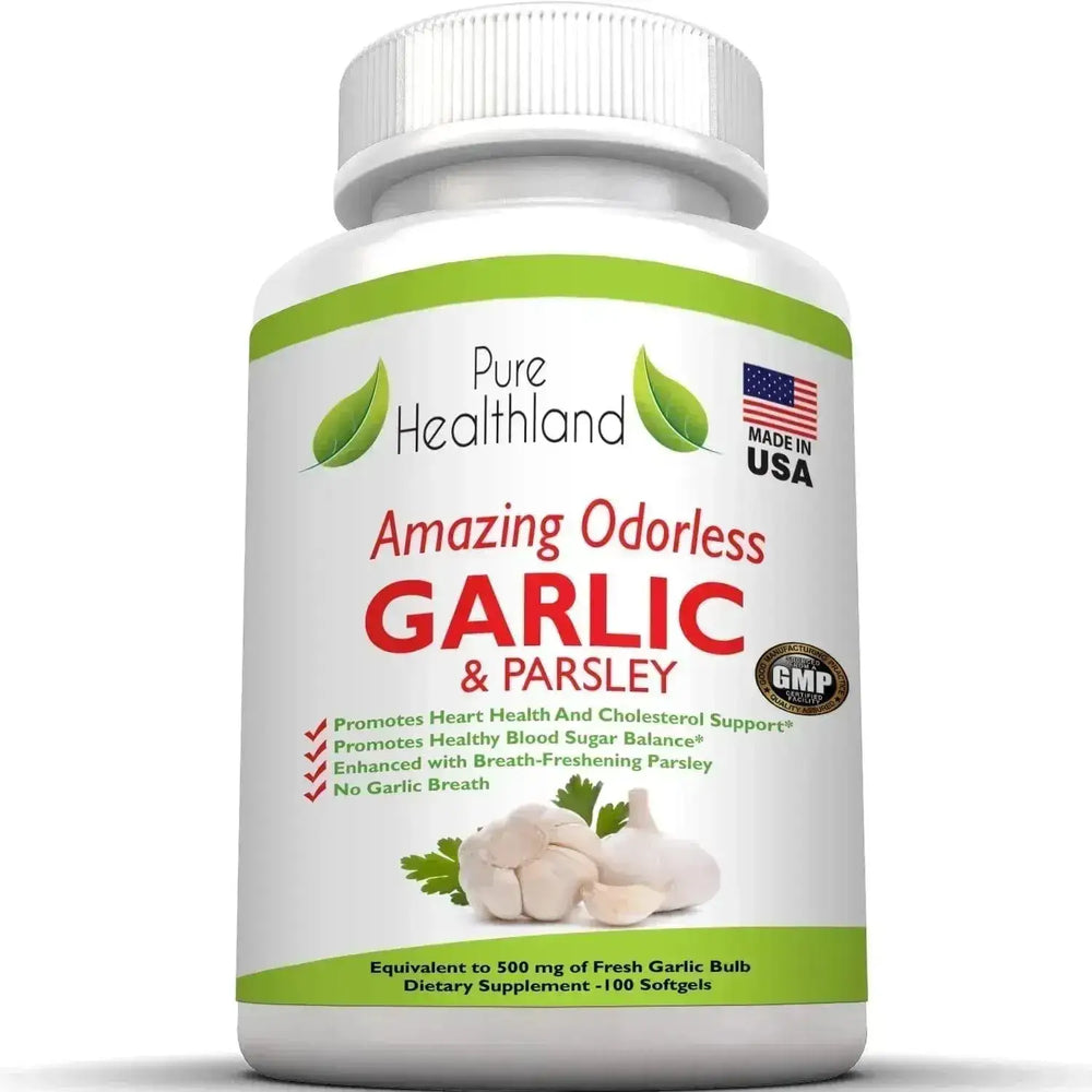 El suplemento de ajo y perejil sin olor para hombres y mujeres de Pure Healthland contiene una fuente de ajo altamente concentrada. ¡Tomar pastillas de ajo sin olor elimina todas las molestias y los efectos secundarios del ajo! Obtienes los beneficios del ajo sin el olor desagradable.