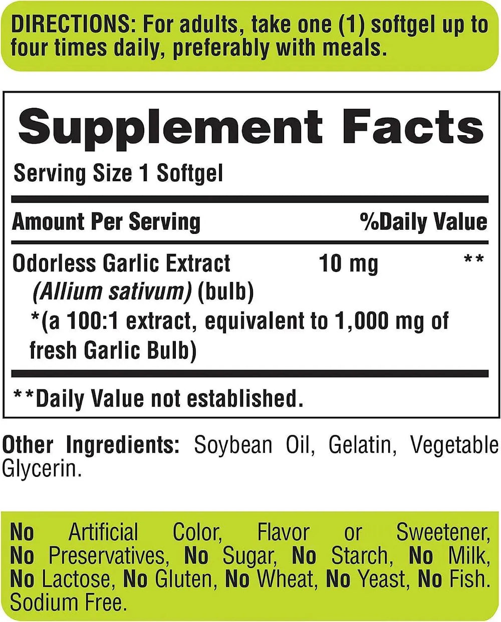 Puritan's Pride Odorless Garlic 1000Mg. 500 Capsulas Blandas