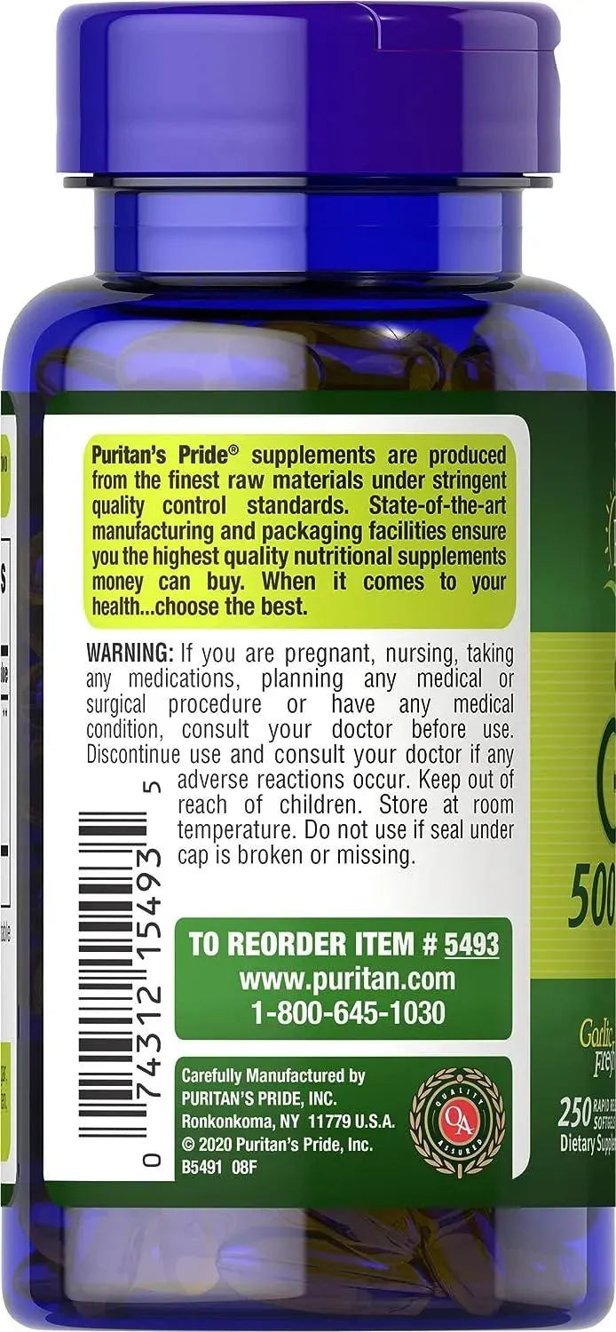 Puritan's Pride Odorless Garlic 500Mg. 250 Capsulas Blandas