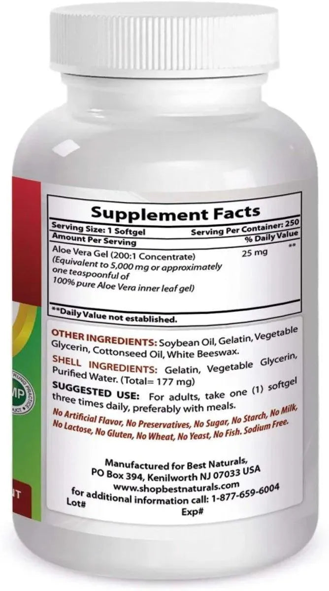 Best Naturals Aloe Vera Gel 5000Mg. 250 Capsulas Blandas