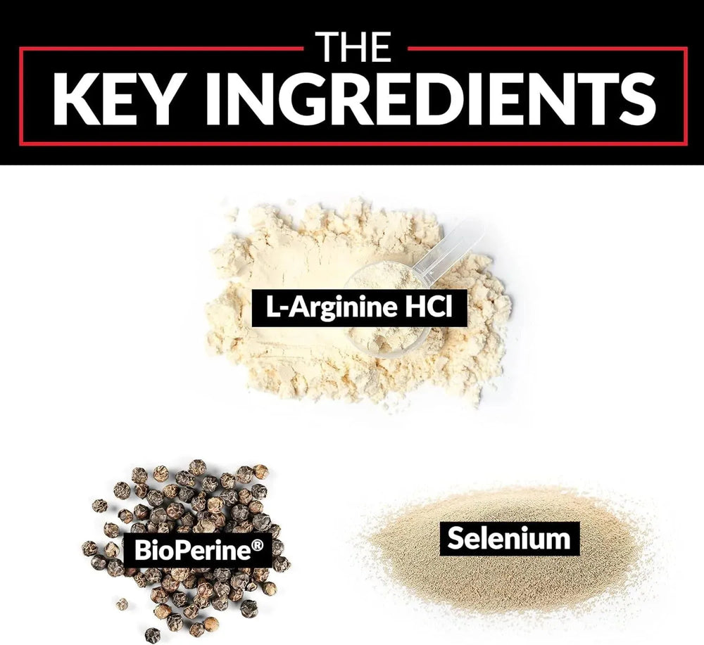 • FORTALECE EL FLUJO SANGUÍNEO: La L-Arginina es un potente aminoácido que aumenta la producción de óxido nítrico en el cuerpo, lo que conduce a un flujo sanguíneo más fuerte, ayudando a entregar nutrientes esenciales y oxígeno a los músculos para un mejor rendimiento.