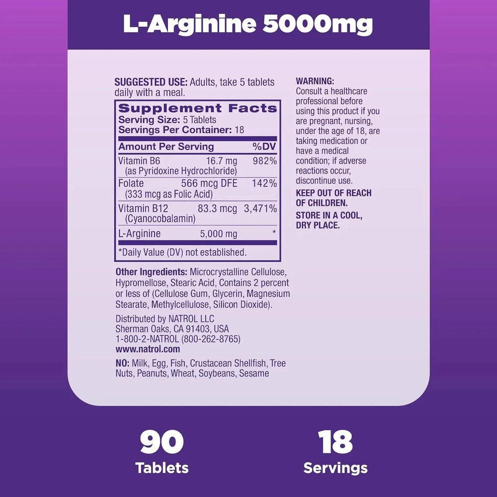 Natrol L-Arginine 5000Mg. 90 Tabletas