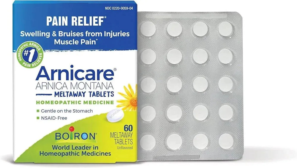 Derretir el dolor: las tabletas Arnicare para aliviar el dolor se derriten en la boca sin necesidad de agua y se pueden tomar con el estómago vacío. Simplemente deje que las tabletas se disuelvan en su boca para experimentar alivio de los dolores y molestias cotidianos.