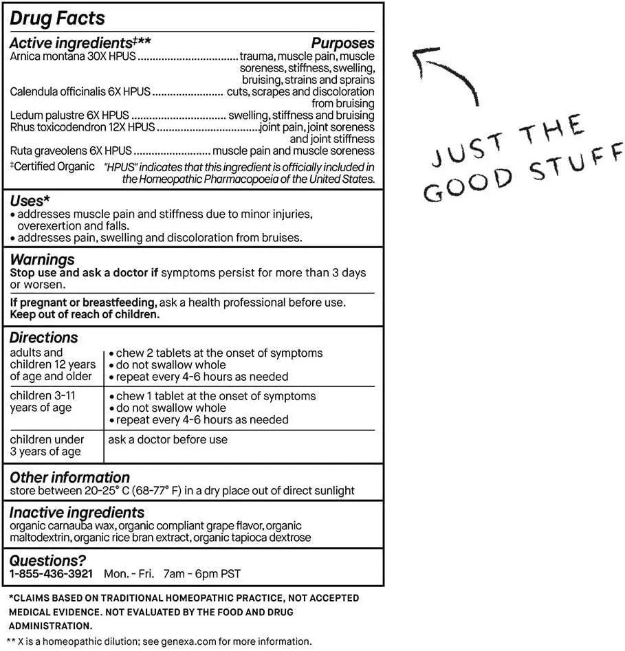 Genexa Arnica Tablets for Pain Relief Formula 100 Tabletas Masticables