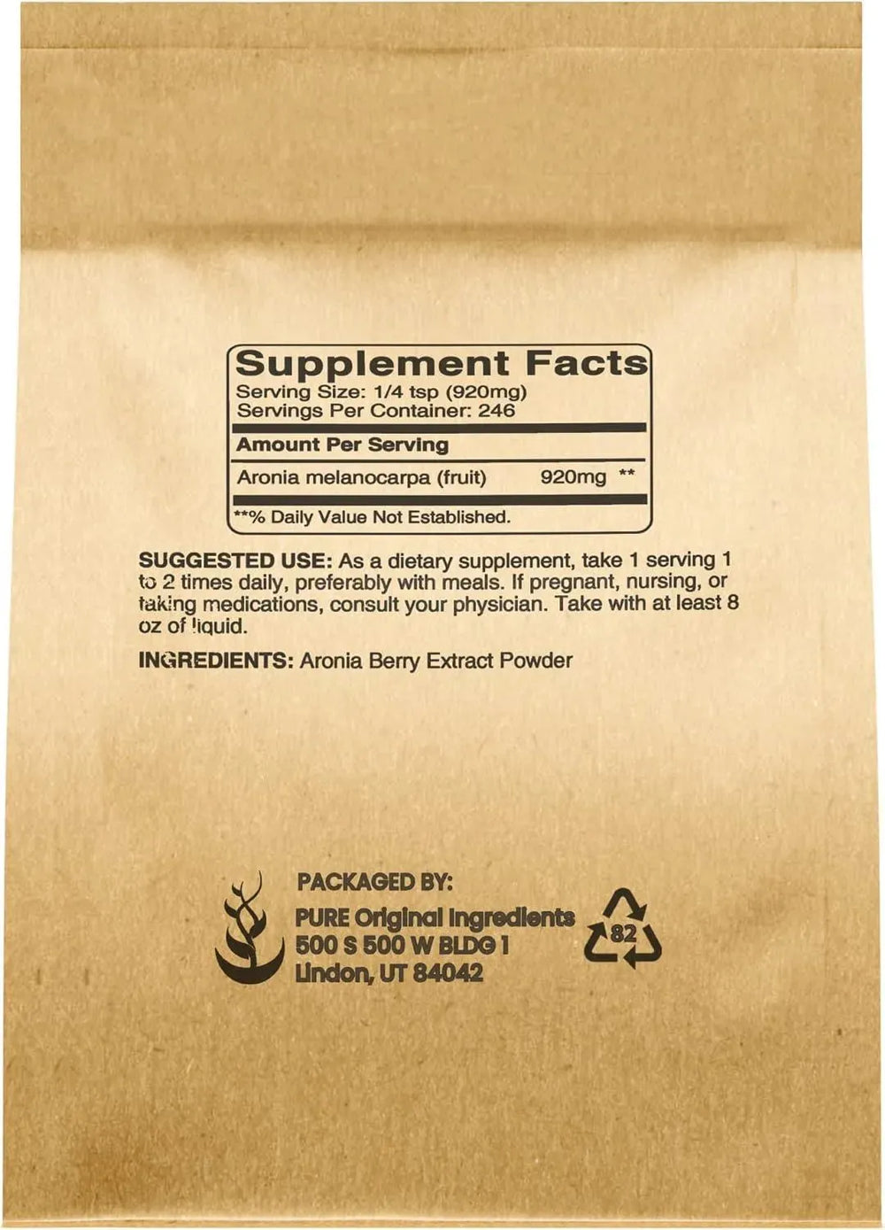 • Pure Original Ingredients Aronia Berry Powder se extrae de un solo ingrediente, lo que proporciona un suplemento puro sin diluir.