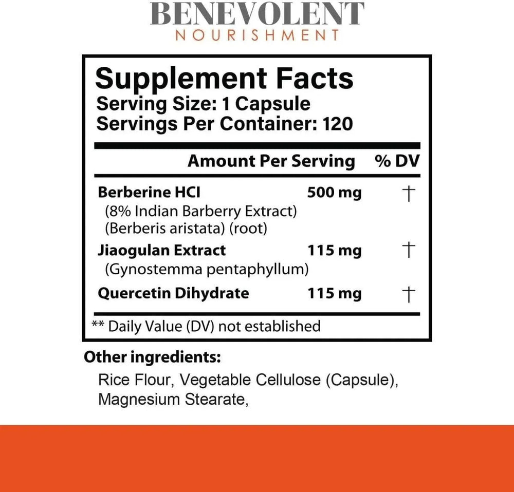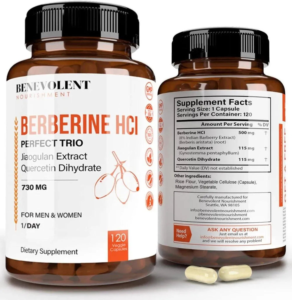 Benevolent Nourishment Premium Berberine HCL 730Mg. 120 Capsulas