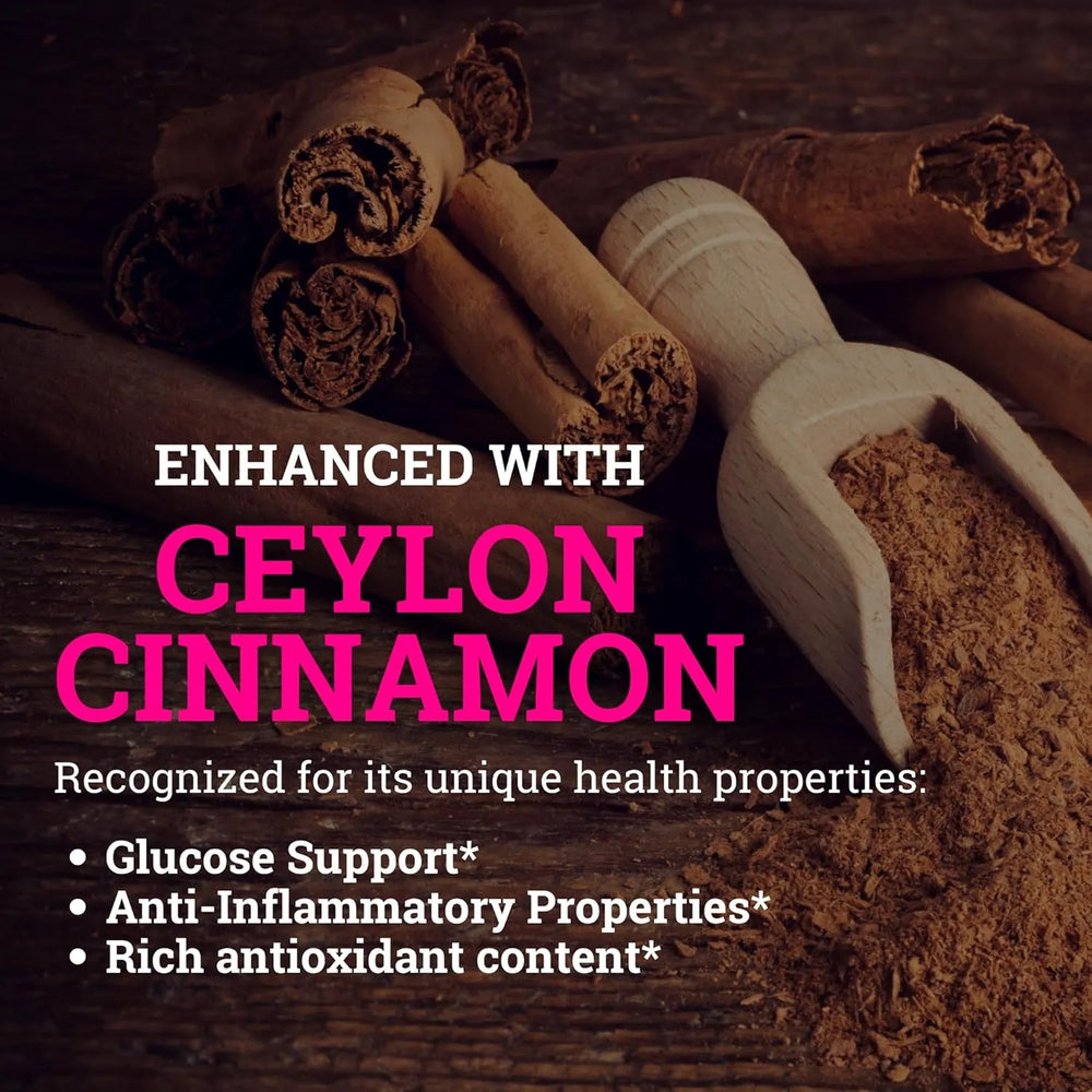• MEJORADA CON 4000 MG DE CANELA DE CEILÁN: Hemos añadido altos niveles de canela de Ceilán para un apoyo adicional, ya que estos suplementos herbales funcionan sinérgicamente para apoyar sus objetivos de pérdida de peso y nivel.