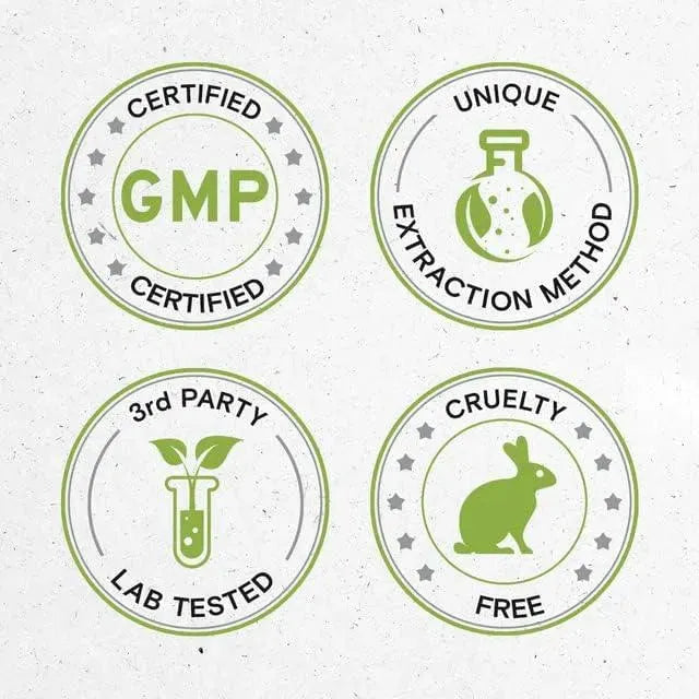 • Probado en laboratorios de terceros: sin sustancias extrañas, sin rellenos, identificación de hierbas confirmada para su seguridad, microprueba