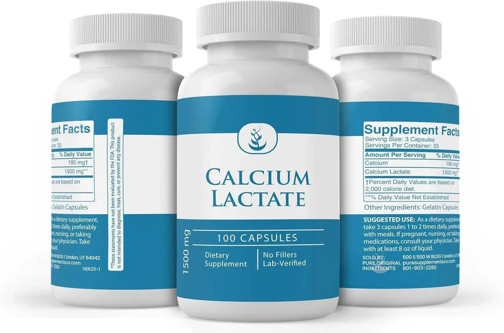 Las cápsulas de lactato de calcio PURE están llenas de un solo ingrediente, lo que proporciona un suplemento puro sin diluir.