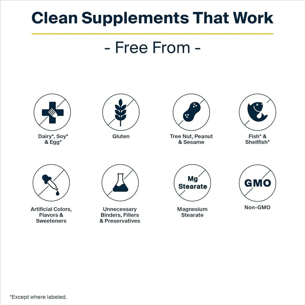 Calidad, pureza y potencia: sin recubrimientos ni aglutinantes, sin gluten, sin lácteos, sin soja y sin azúcar.