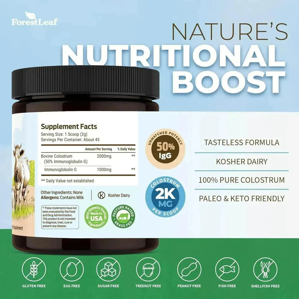 ForestLeaf Colostrum Powder 50% IgG Unflavored 45 Servicios 90Gr.