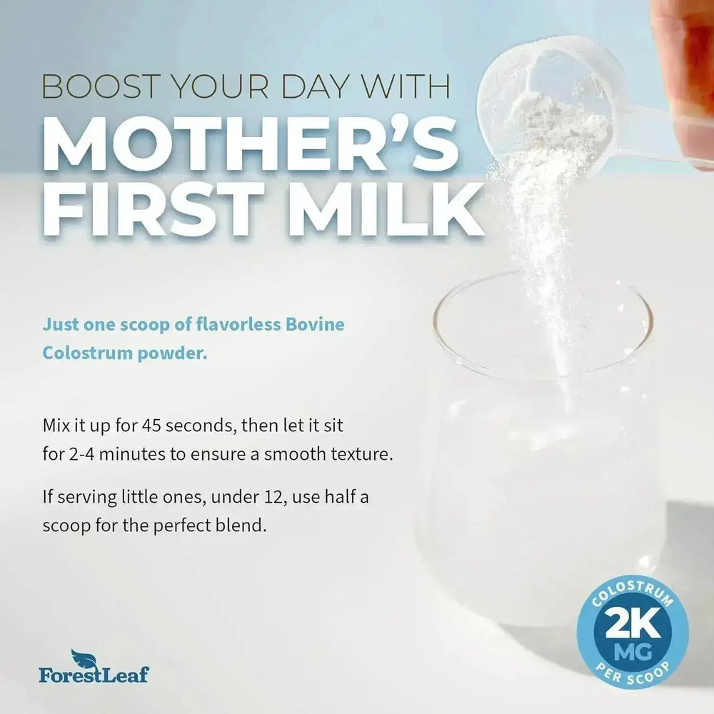 CALOSTRO BOVINO: LA PRIMERA LECHE DE LA MADRE - Aproveche los beneficios de la nutrición primaria de la naturaleza con el suplemento en polvo de calostro bovino de ForestLeaf. El calostro de vaca (bovino) es un superalimento apto para dietas paleo y cetogénicas repleto de nutrientes vitalizantes y anticuerpos fundamentales