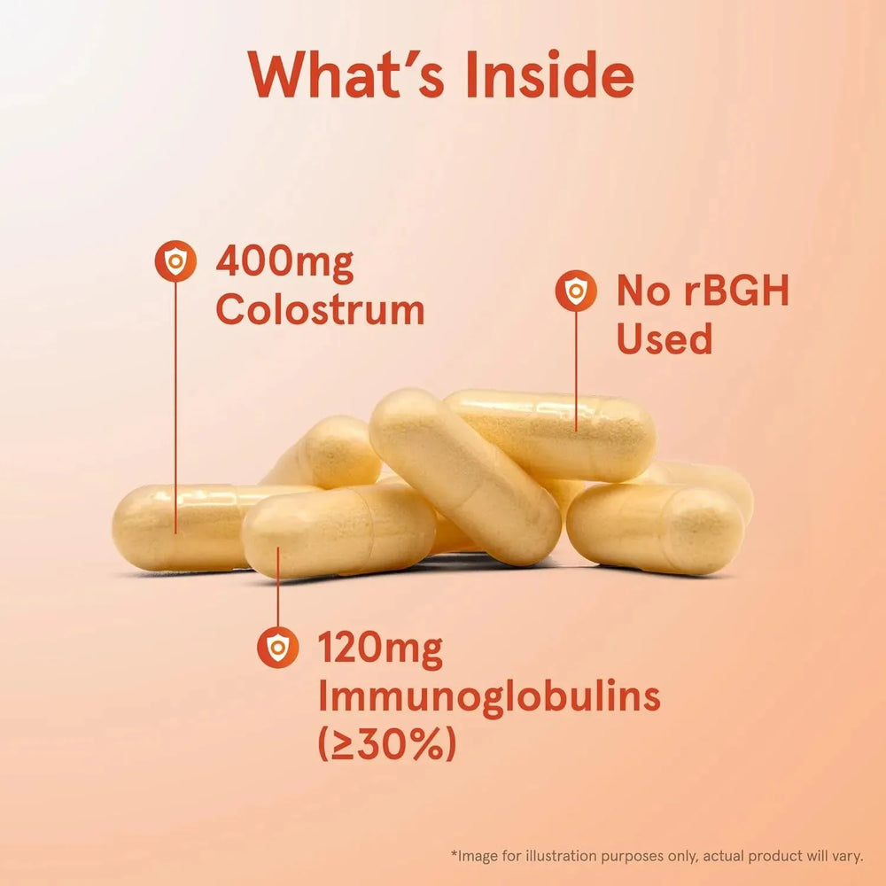 Libre de antibióticos y hormonas añadidas: el calostro se recolecta dentro de las 16 horas posteriores al parto de vacas estadounidenses alimentadas con pastos criadas sin hormonas de crecimiento (rBGH), antibióticos ni pesticidas en su alimento.