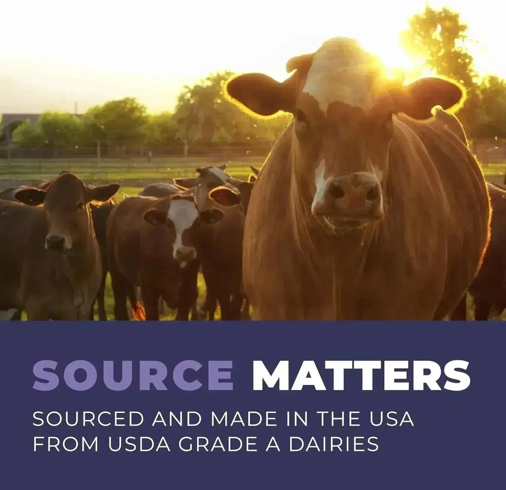 DE ORIGEN ESTADOUNIDENSE: Nos enorgullecemos de nuestro compromiso con la calidad. Nuestro calostro proviene de lecherías de grado A del USDA, lo que garantiza que cumple con los estándares más altos. Nuestro calostro se procesa meticulosamente a temperaturas suaves para retener la máxima bioactividad, para que aproveche al máximo cada porción.
