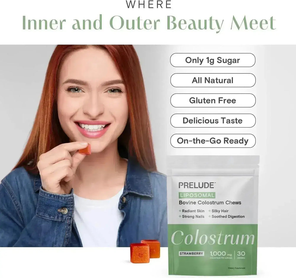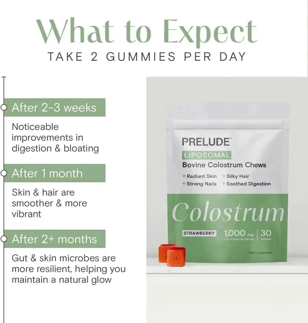 Prelude Bovine Colostrum Chews 1000Mg. Strawberry 60 Gomitas
