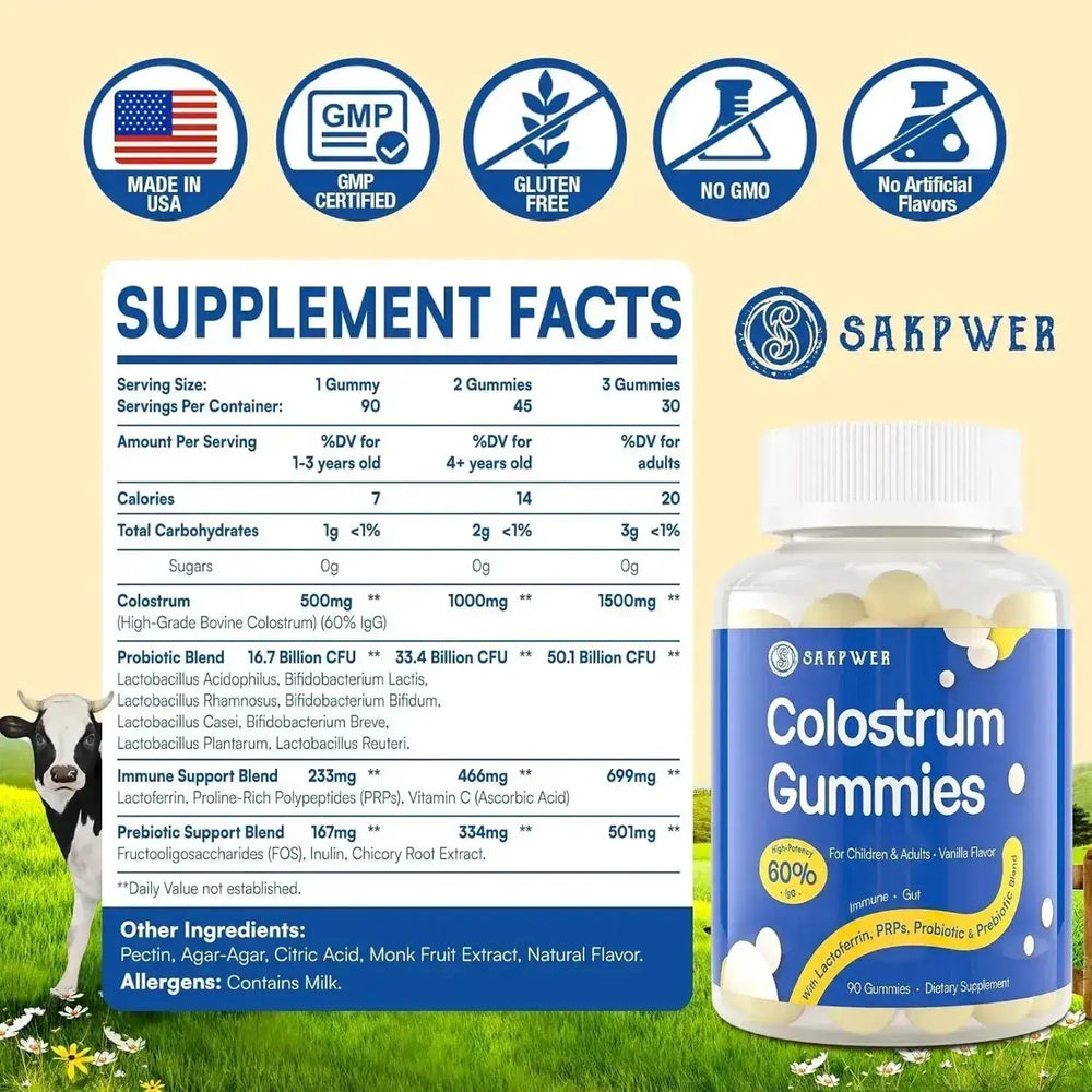 Sakpwer Bovine Colostrum 60% IgG Gummies 90 Gomitas 2 Pack