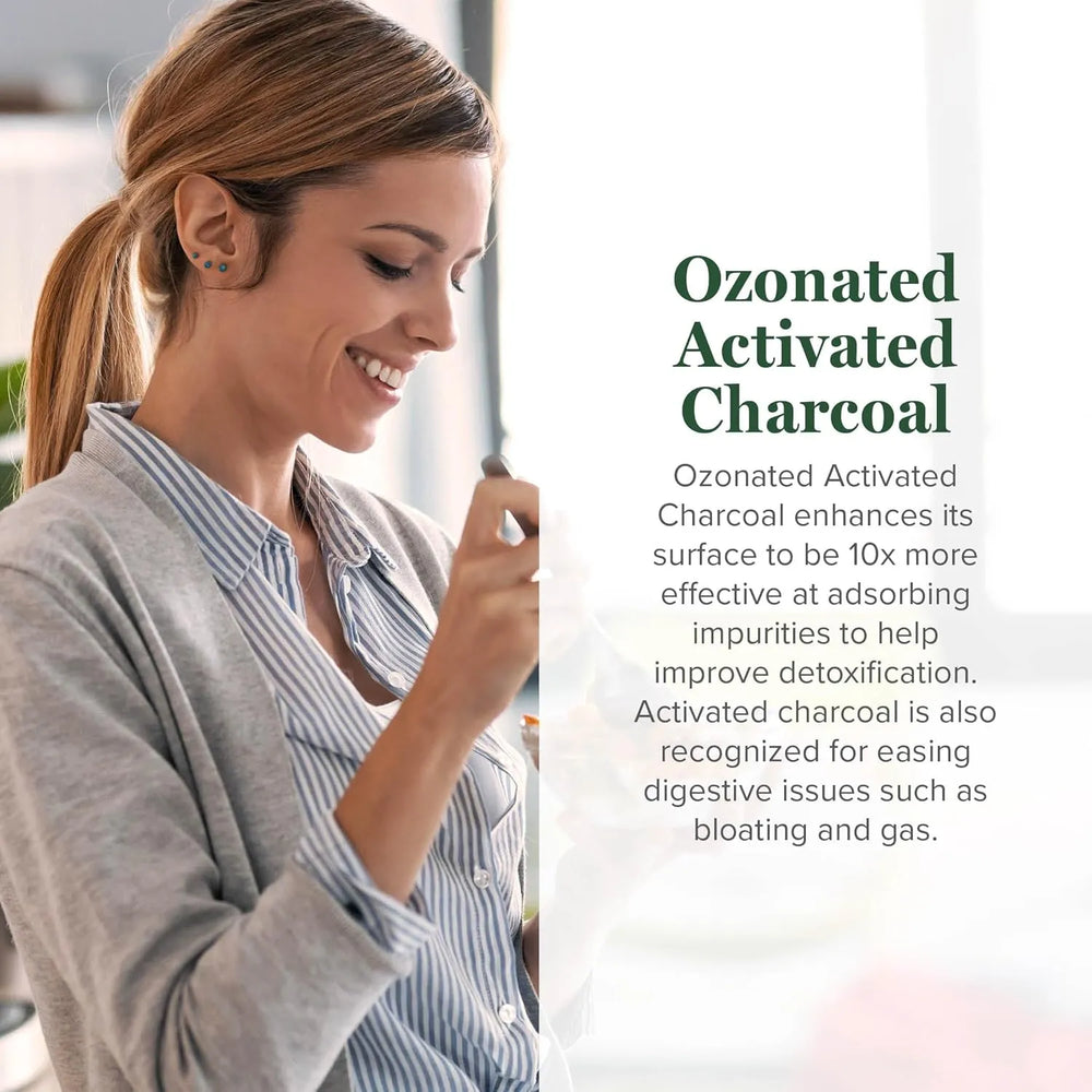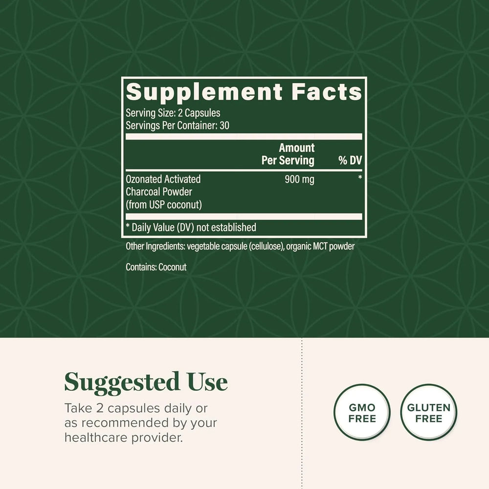 • Fabricado en EE. UU.: Nuestras cápsulas de carbón activado ozonizado se fabrican en nuestras instalaciones de última generación con certificación cGMP en Phoenix, Arizona.