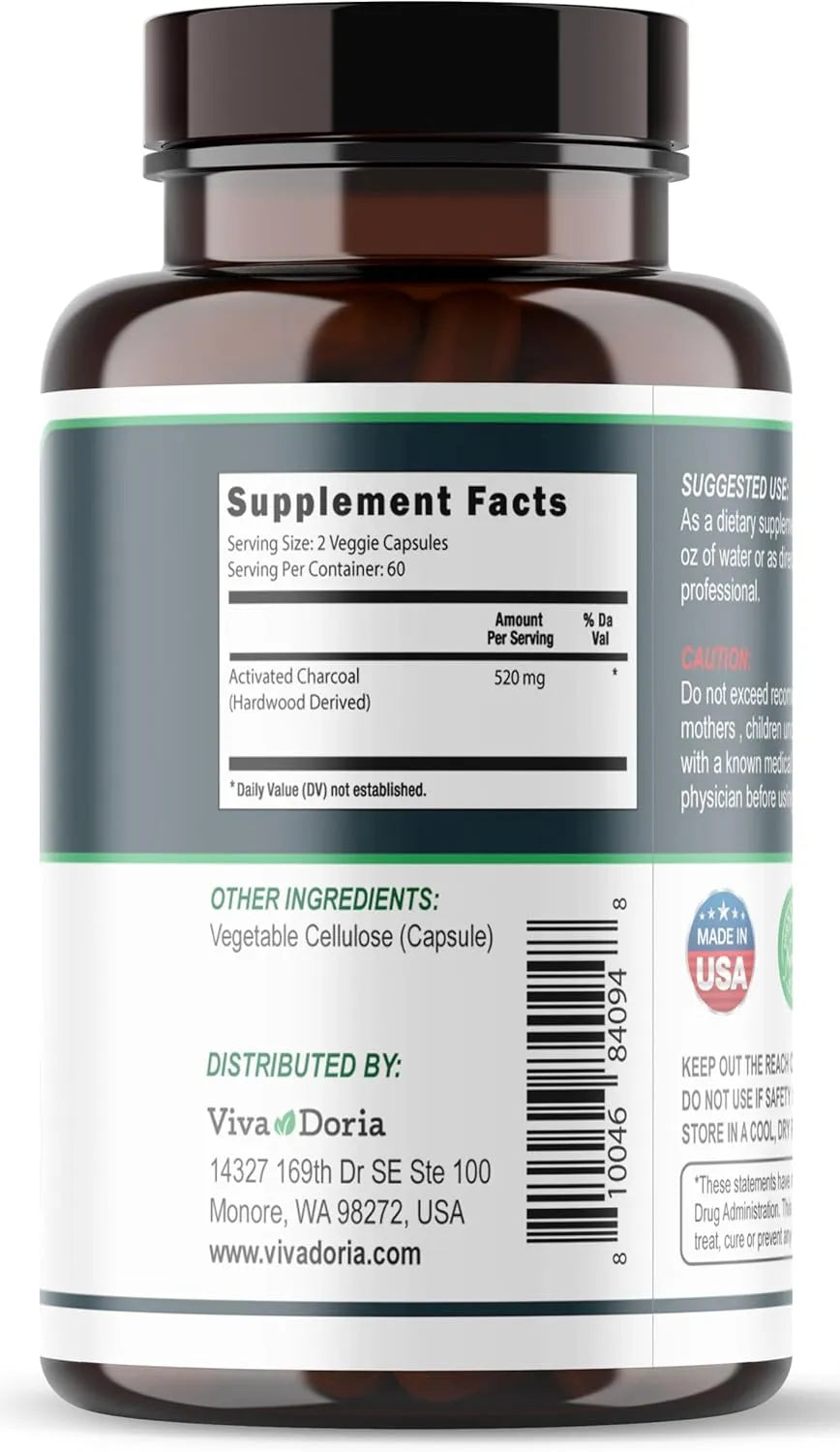 Viva Doria Activated Charcoal 520Mg. 120 Capsulas