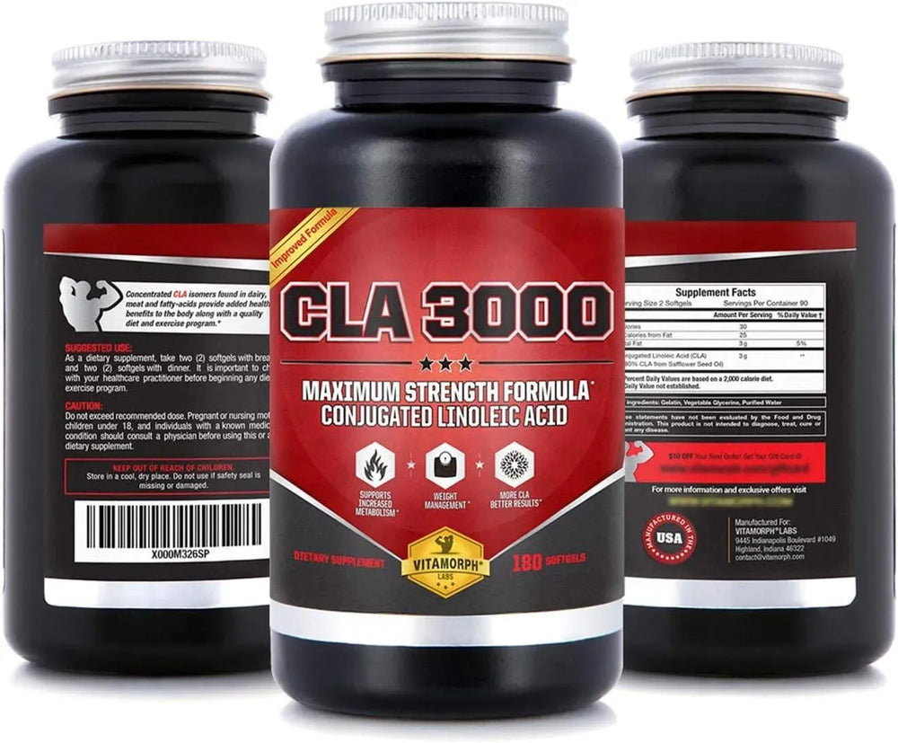 Ácido linoleico conjugado CLA 3000: CLA del aceite de semilla de cártamo de Vitamorph apoya la pérdida de peso junto con una dieta de calidad y un programa de ejercicios; esta fórmula de quemador CLA incluye un suministro de 45 días de CLA de calidad