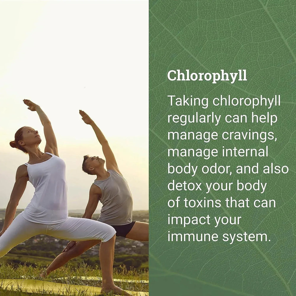 Ayuda con el olor corporal: nuestra clorofila líquida funciona como suplementos para el olor corporal, ya que ayuda naturalmente con el sudor corporal y el mal aliento. La clorofila descompone internamente los compuestos que causan el mal olor ayudando a desintoxicar el cuerpo.