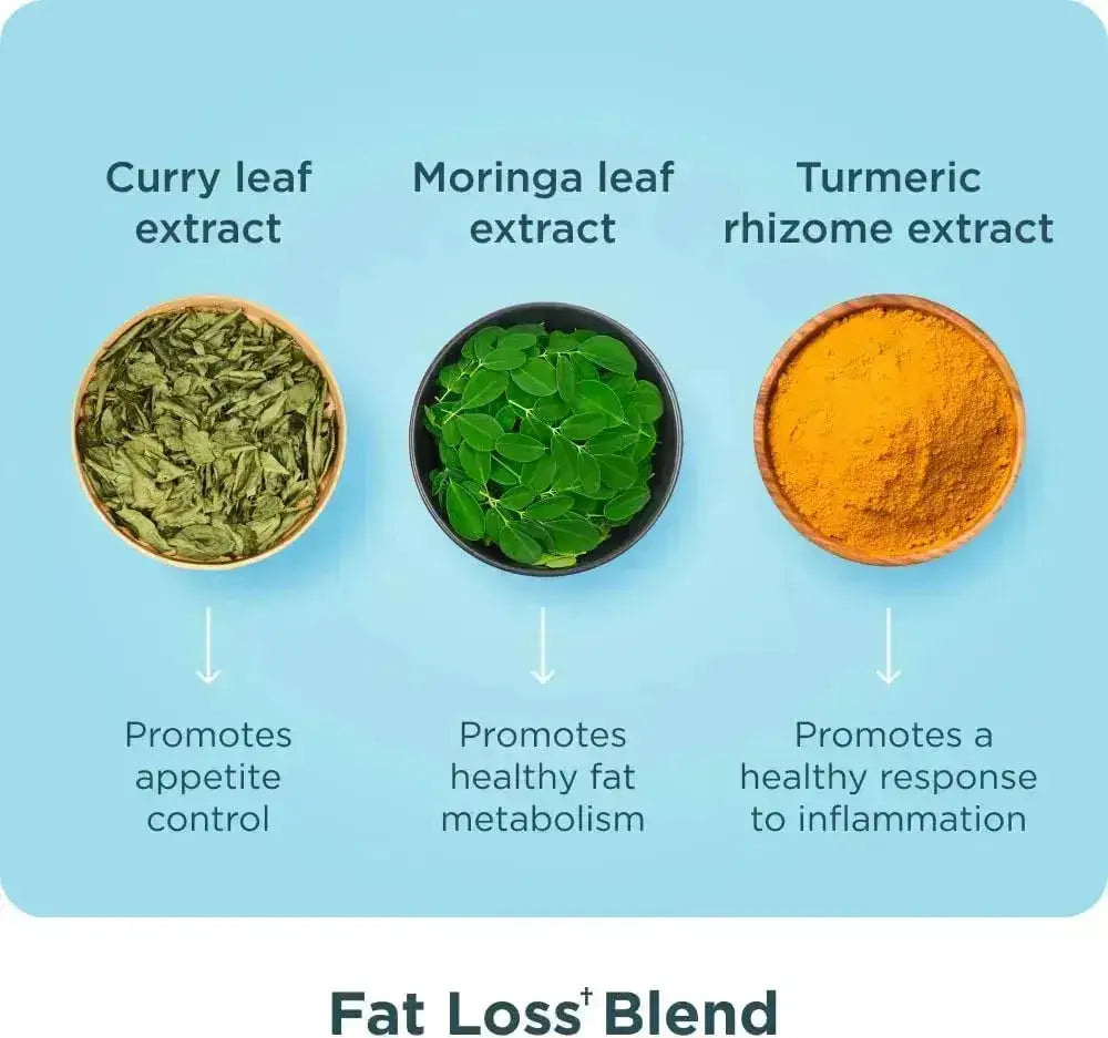 Mezcla patentada para la pérdida de grasa: potenciado por una mezcla patentada de ingredientes clave que incluye extracto de hoja de moringa, extracto de hoja de curry y extracto de rizoma de cúrcuma, este suplemento ofrece resultados excepcionales, quema hasta un 15 % más de calorías en reposo y permite una pérdida de peso 6 veces mayor.