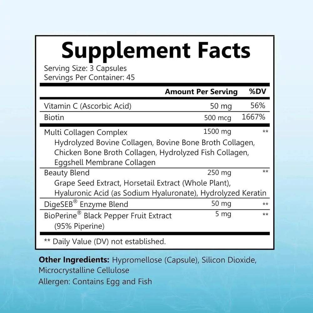 Cápsulas de colágeno multivitamínico todo en uno para mujeres: con péptidos de colágeno hidrolizado (tipos I, II, III, V y X) más vitamina C, biotina, queratina, enzimas digestivas y ácido hialurónico, nuestro suplemento de colágeno para mujeres es la alternativa inteligente y conveniente al colágeno en polvo.
