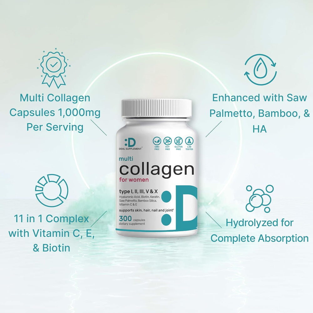 • Dosis y porciones: 300 cápsulas por frasco, tamaño de porción de 3 cápsulas, suministro para 100 días. Contiene 1000 mg de péptidos de colágeno, 50 mg de ácido hialurónico, 50 mg de vitamina C, 5000 mcg de biotina, 15 mg de vitamina E, 100 mg de saw palmetto, 100 mg de queratina hidrolizada y 50 mg de sílice de bambú por porción.