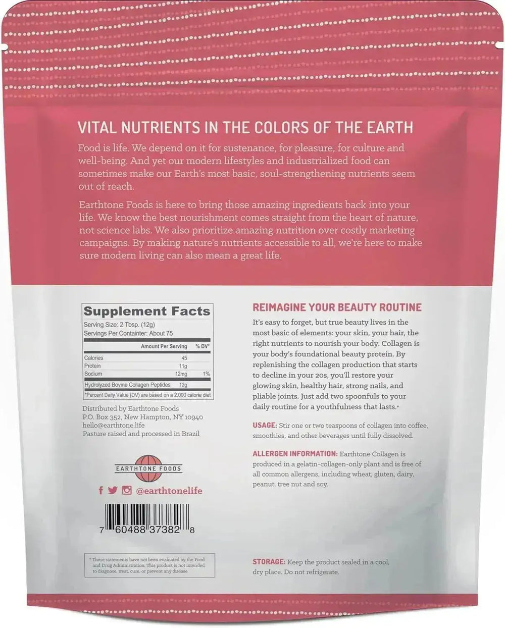 Proteína esencial para la belleza: el polvo de colágeno Earthtone restaura el colágeno menguante de su cuerpo para lograr una piel suave, un cabello revitalizado, tendones, cartílagos y articulaciones saludables, un intestino sano y nutrición muscular
