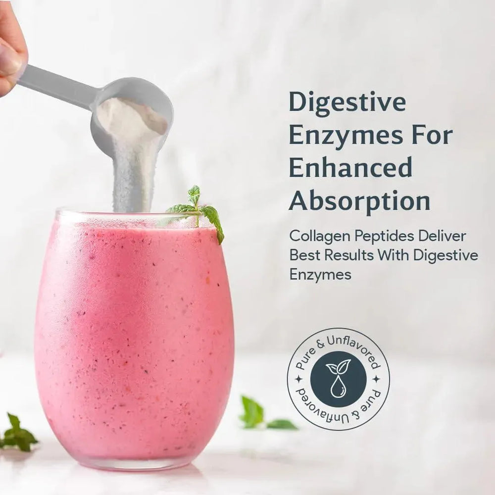 ENZIMAS DIGESTIVAS PARA UNA ABSORCIÓN MEJORADA: las enzimas digestivas especiales mejoran la absorción de péptidos de colágeno para obtener los máximos resultados. Esto da como resultado una mejor salud intestinal, un sistema inmunológico más fuerte y luminosidad desde dentro.