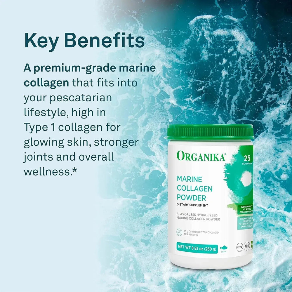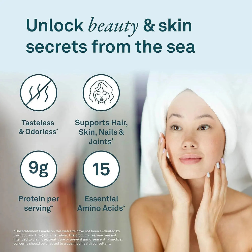 • COLÁGENO DE BELLEZA: El colágeno marino tiene un alto contenido de colágeno tipo 1, que es esencial para mantener la salud de la piel, el cabello y las uñas.