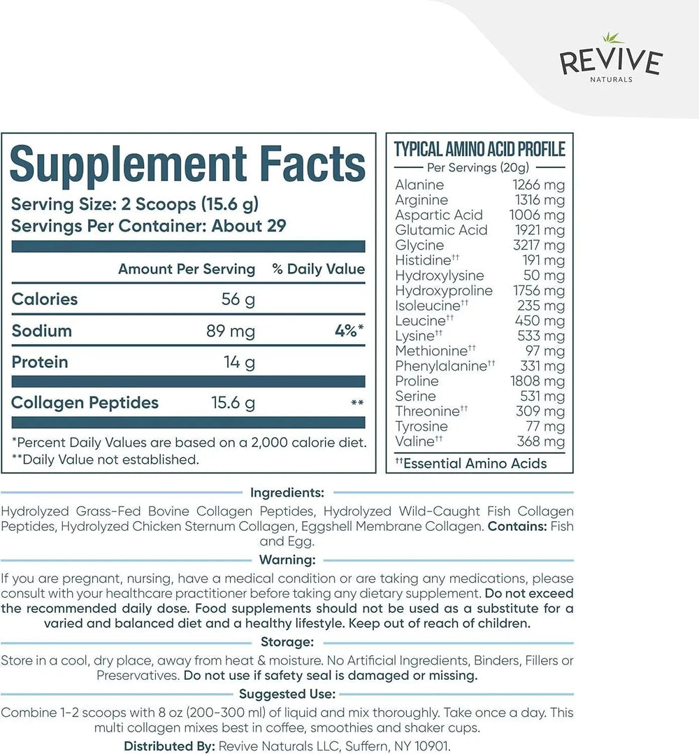 Revive Naturals Multi Collagen Hydrolyzed Protein Powder 454Gr.
