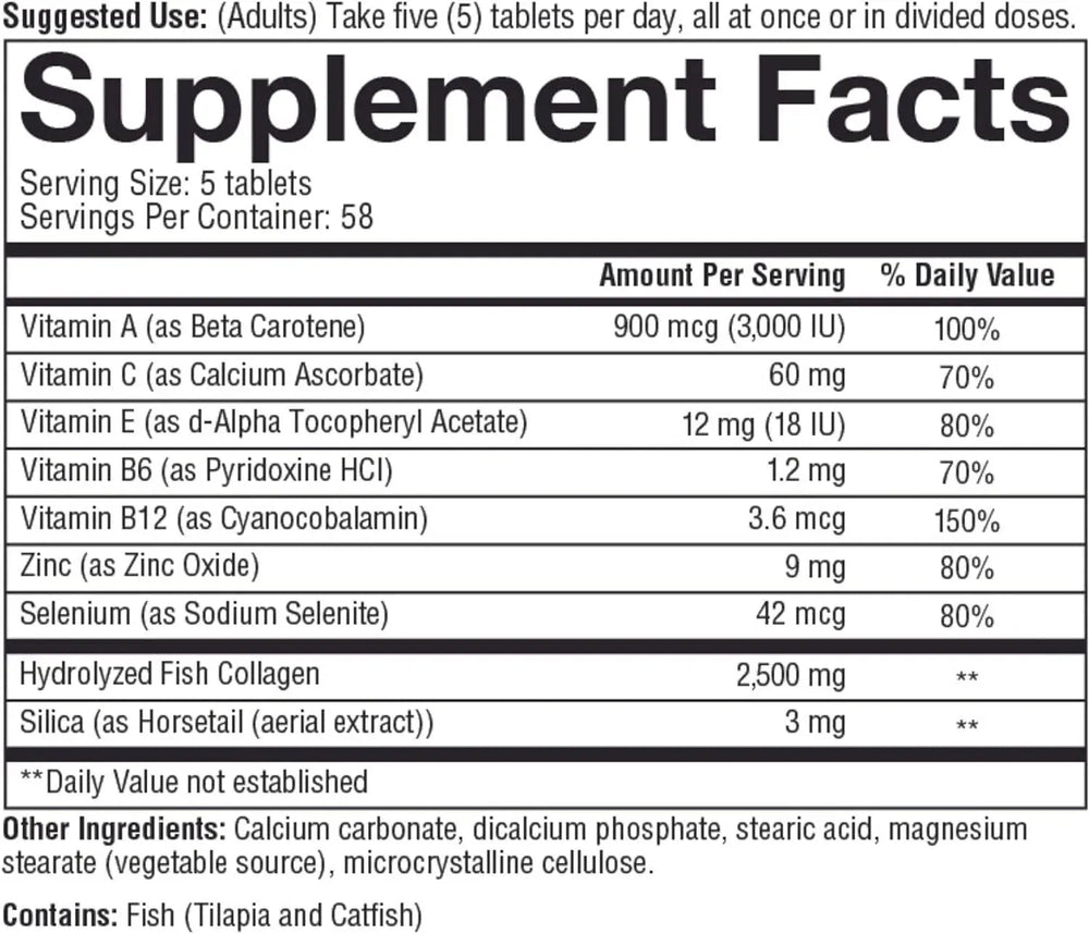 • TABLETAS DE COLÁGENO MARINO: El colágeno disminuye con la edad. El colágeno marino de Youtheory ayuda a reponer esta proteína vital para revitalizar la piel, el cabello, las uñas, los tendones y los ligamentos. Esta fórmula a base de pescado está formulada para mejorar la digestibilidad y la absorción.