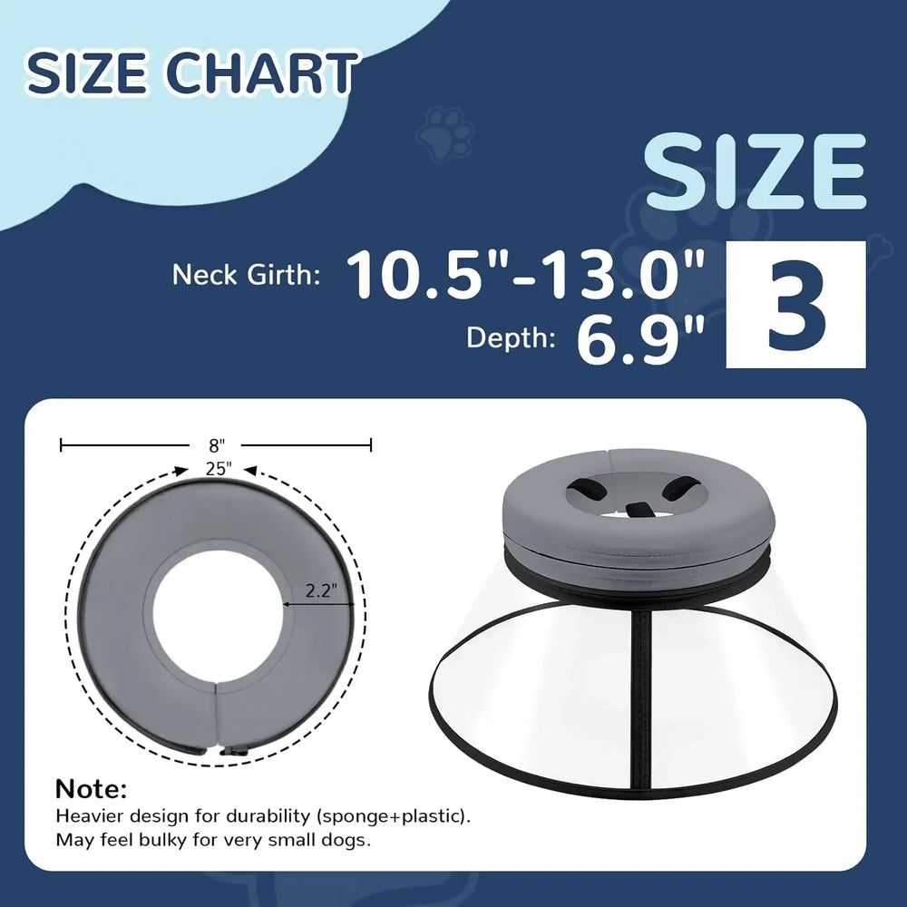 ICOYEA Sponge Core Dog Cone GRAY Size 3 Neck: 10.5"- 13.0"