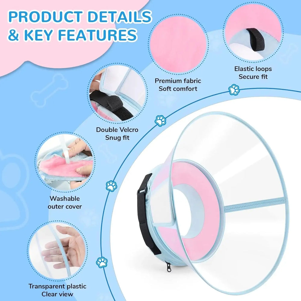 Modos 2 en 1: Comodidad y protección: Cambia entre el modo de comodidad diaria y el modo de protección mejorada según las necesidades de tu mascota. Usa el suave collar de recuperación solo para comer, dormir o jugar, o coloca el protector transparente para mayor protección cuando lo necesites. Un collar médico para perros, dos maneras de cuidarlos.