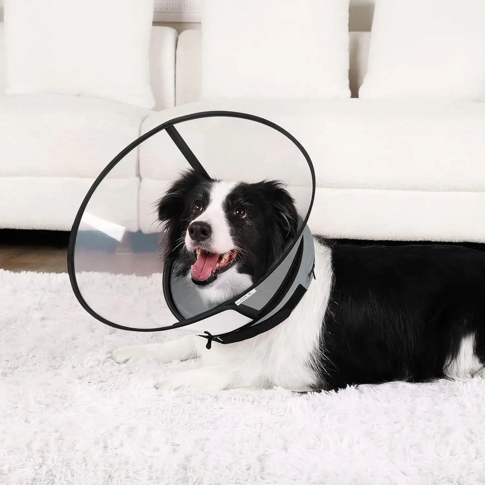 Modos 2 en 1: Comodidad y protección: Cambia entre el modo de comodidad diaria y el modo de protección mejorada según las necesidades de tu mascota. Usa el suave collar de recuperación solo para comer, dormir o jugar, o coloca el protector transparente para mayor protección cuando lo necesites. Un collar médico para perros, dos maneras de cuidarlos.
