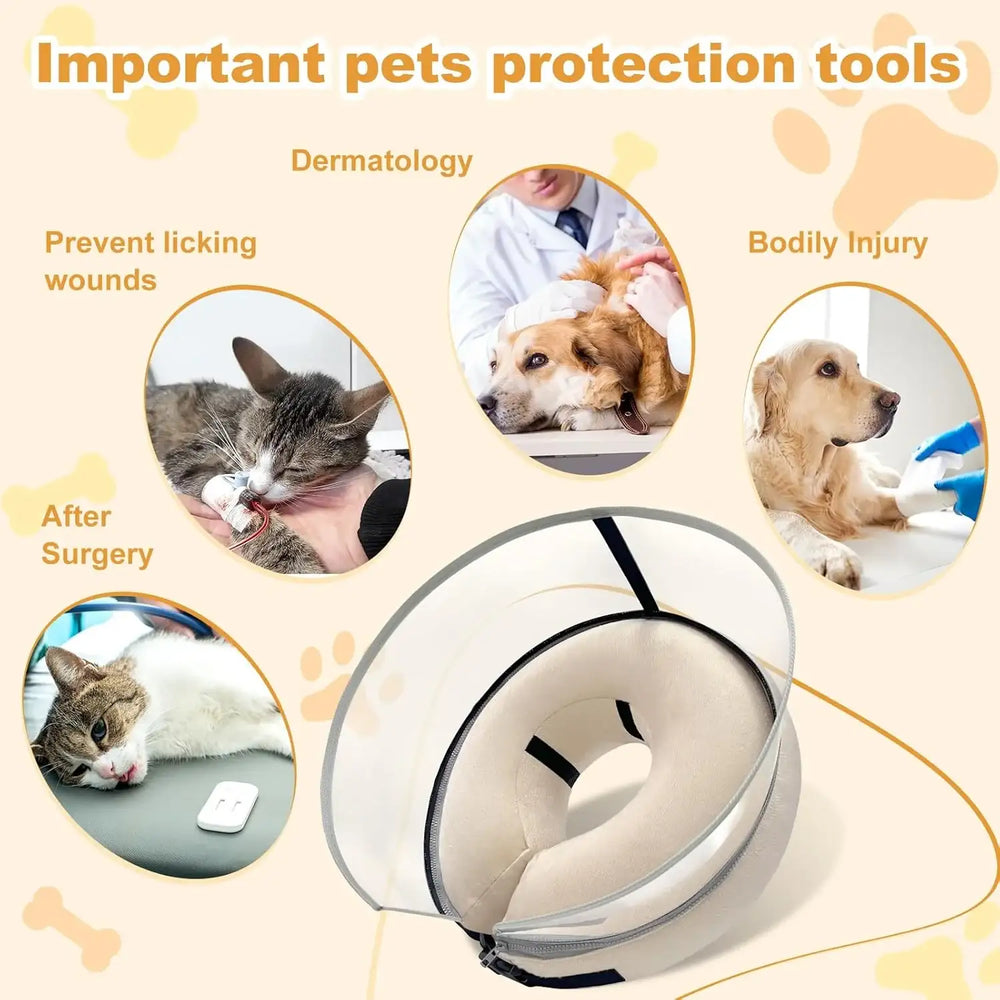 Diseño 2 en 1, doble protección: Combinando un collar inflable y una barrera suave transparente, este cono para perros proporciona una protección integral sin afectar las actividades diarias de su mascota.