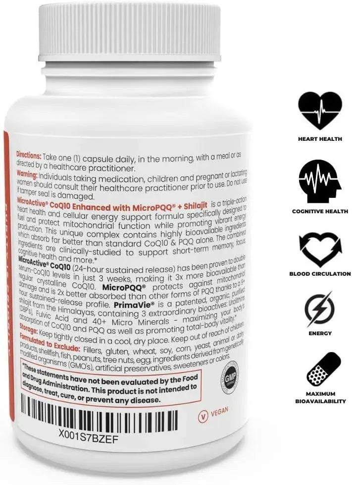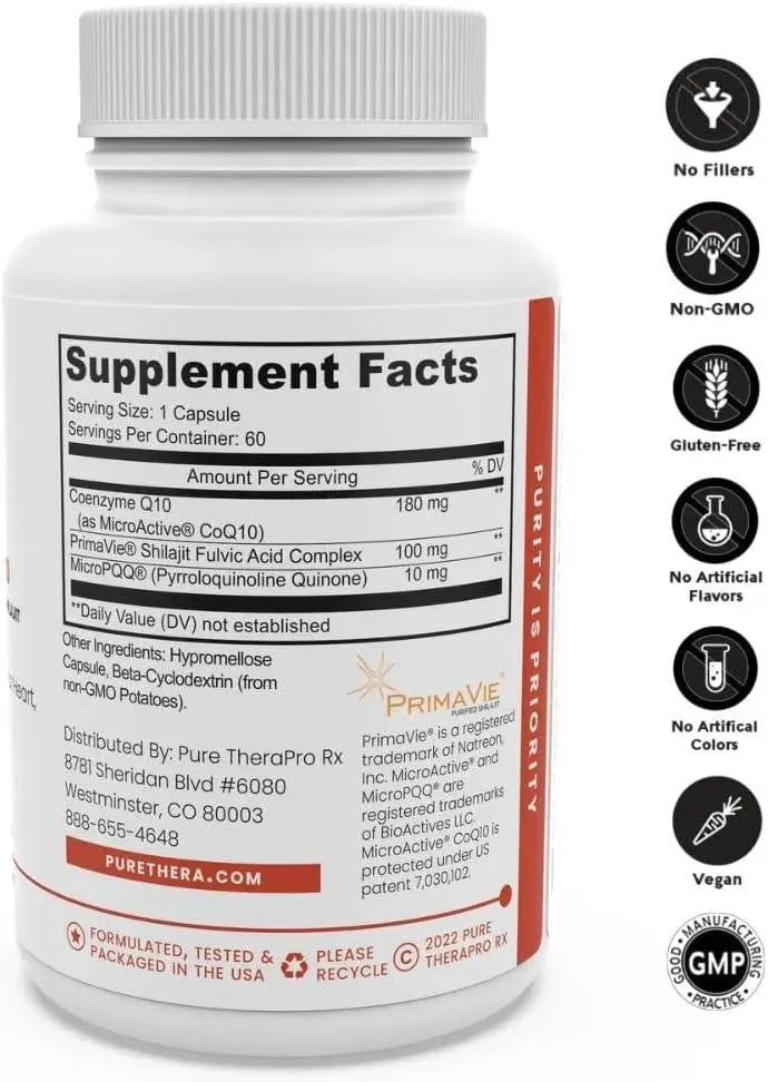 Pure Therapro Rx MicroActive CoQ10 Enhanced with MicroPQQ + Shilajit 60 Capsulas