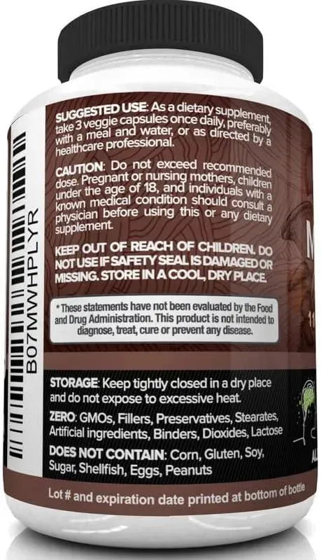 Fórmula de 11 champiñones de la más alta potencia disponible: nuestras cápsulas de champiñones de la más alta calidad consisten en 2600 mg de champiñones en la proporción más beneficiosa. Nuestra fórmula no contiene OMG, conservantes, estearatos, ingredientes artificiales, aglutinantes.
