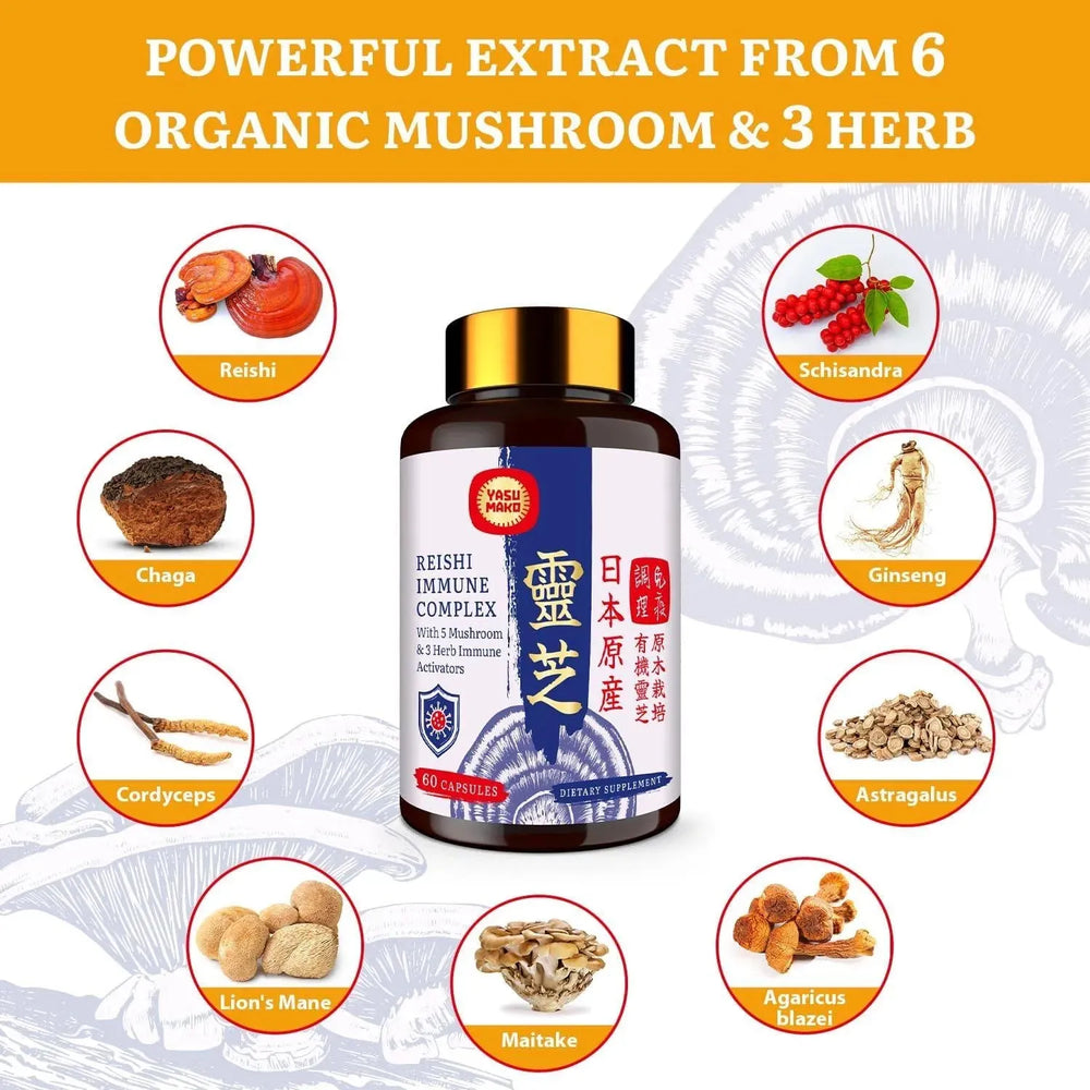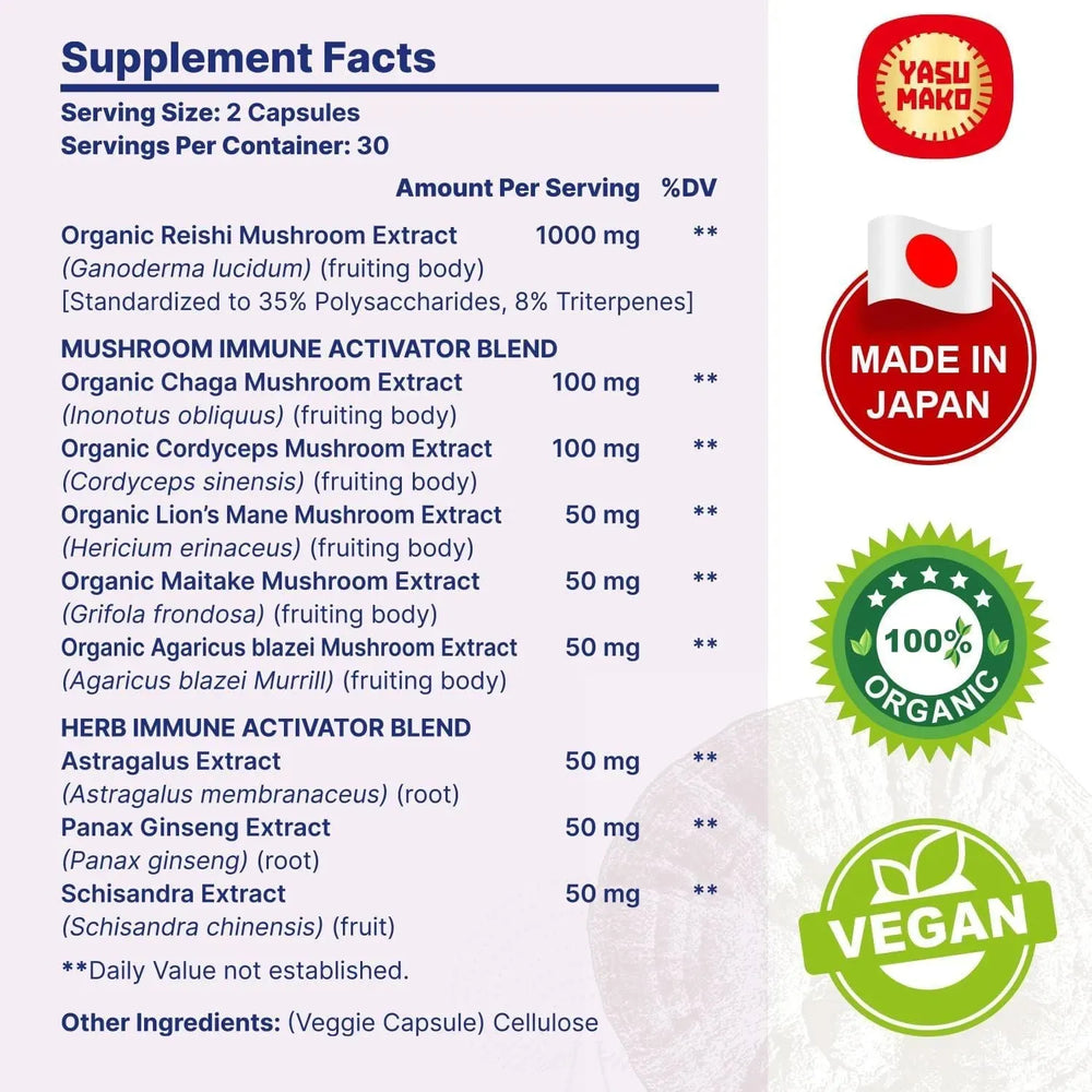 Yasumako Japanese Reishi Mushroom Complex 1500Mg. 60 Capsulas 2 Pack